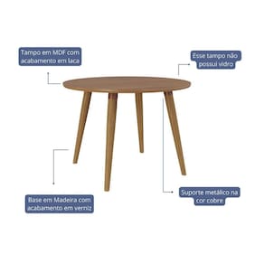 Mesa de Sala Jantar Dani c/ Tampo Madeirado Redondo 109x109cm Carvalho/Cinamomo - Cimol