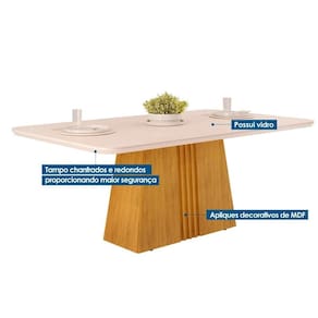Mesa de Sala Jantar Italia c/ Tampo Madeirado c/ Vidro Curvo 170x90cm Cedro/Off White - DJ Móveis