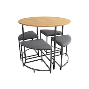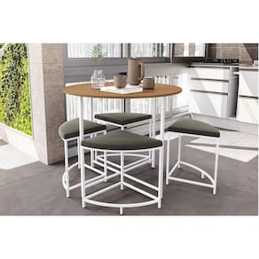 Mesa de Sala Jantar LI038 c/ Tampo Madeirado 90 cm + 4 Banquetas Canela/Branco - Kappesberg