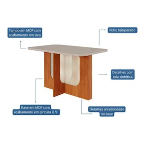 Mesa de Sala Jantar Louise c/ Tampo Madeirado c/ Vidro 130x80cm Cinamomo/Off White - Cimol