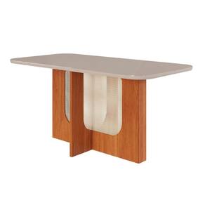 Mesa de Sala Jantar Louise c/ Tampo Madeirado c/ Vidro 160x80cm Cinamomo/Off White - Cimol