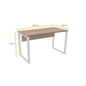 DETALHES DO PRODUTO- Mesa para escritório, com tampo em madeira (MDP) e base tubular, com pés niveladores.