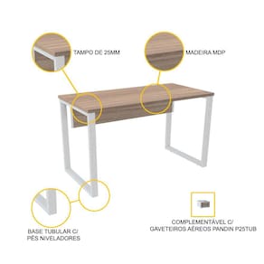 Precisa de ajuda para escolher uma mesa nova para seu escritório? Na dúvida, escolha um clássico atemporal. Essa mesa com pés tubulares brancos e tampo de madeira MDP em tom de madeira natural é a opção mais básica, elegante e simples que você pode encontrar. Ela combina com tudo - certeza que vai combinar com seu ambiente de trabalho. Sem erro - e com muita qualidade - ela pode ser a peça que falta em sua grande empresa ou um item essencial para quem está montando o primeiro escritório. Procura algo menos simples? Fácil: essa mesa de trabalho é compatível com gaveteiros da linha P25 da Pandin, deixando sua escolha ainda mais completa. Peça coringa em uma decoração multicolorida ou a estrela da cena em um ambiente monocromático clean e discreto, essa mesa faz parte da Linha P25 da Pandin, uma linha com design clássico e cheia de estilo, com diferentes combinações de cores, perfeita para diversos profissionais e ambientações.