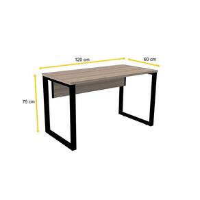 DETALHES DO PRODUTO- Mesa para escritório, com tampo em madeira (MDP) e base tubular, com pés niveladores.
