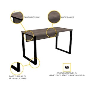 Precisa de ajuda para escolher uma mesa nova para seu escritório? Na dúvida, escolha um clássico atemporal. Essa mesa com pés tubulares pretos e tampo de madeira MDP em tom de madeira escura é a opção mais básica, elegante e simples que você pode encontrar. Ela combina com tudo - certeza que vai combinar com seu ambiente de trabalho. Sem erro - e com muita qualidade - ela pode ser a peça que falta em sua grande empresa ou um item essencial para quem está montando o primeiro escritório. Procura algo menos simples? Fácil: essa mesa de trabalho é compatível com gaveteiros da linha P25 da Pandin, deixando sua escolha ainda mais completa. Peça coringa em uma decoração multicolorida ou a estrela da cena em um ambiente monocromático clean e discreto, essa mesa faz parte da Linha P25 da Pandin, uma linha com design clássico e cheia de estilo, com diferentes combinações de cores, perfeita para diversos profissionais e ambientações.