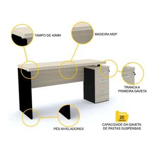 - 2 gavetas comuns e 1 gaveta para pastas suspensas.