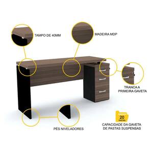 Pense bem antes de comprar qualquer mesa. Lembre-se que você ou seus colaboradores vão passar muitas horas trabalhando nela. Se procura dicas para montar um escritório bonito, básico e moderno na medida certa, essa é a nossa: uma mesa de escritório com design elegante e qualidade indiscutível. Com pés em painel na cor preta e três gavetas com fechadura (sendo uma das gavetas maior, para armazenar pastas suspensas), essa mesa na cor de madeira escura é perfeita para escritórios de executivos, gerentes e funcionários que desempenhem funções que precisam de organização e segurança. Esta mesa é uma peça com a qualidade da linha PE40 da marca Pandin, conhecida por seus móveis de escritório de design clássico e sofisticado que unem beleza, funcionalidade e estilo ao melhor custo-benefício do mercado. Para que seu projeto fique completo, consulte nossa loja e encontre outras opções de móveis da mesma linha, como mesas modulares ou sem gavetas, arquivos, estantes, gaveteiros e armários, para compor uma decoração harmoniosa e profissional.