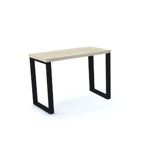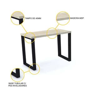 DETALHES DO PRODUTO- Mesa para escritório com tampo em madeira (MDP) e base tubular, com pés niveladores.