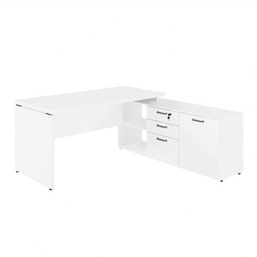 Mesa p/ Escritório em L 1,90m Web40 c/ Armário Branco/Branco