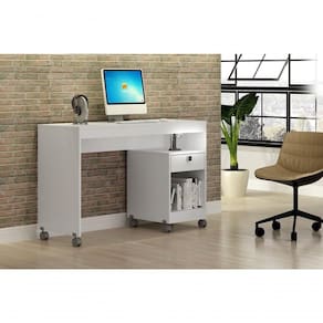 Mesa Para Computador 01 Gaveta Com Rodizio Giga Valdemoveis Branco Você já tem muitas coisas com que se preocupar durante um dia normal de trabalho ou estudos, então não tem como adicionar um espaço desorganizado e sem inspiração para essa conta, não é verdade? Com a Mesa para Computador Giga, seu foco será totalmente nos jobs do dia, pois o tampo amplo te permite apoiar não só o computador, mas também aqueles itens essenciais para que a rotina flua de forma eficiente. Depois é só tirar proveito do design básico do móvel para fazer combinações incríveis e criar um ambiente super produtivo. Informações técnicas