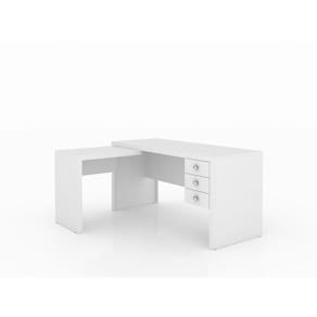 Características: Material: MDP 15mm / fibra 3mm -fundo da gaveta- Revestimento Branco: BP | Demais: Pré impregnado BP light Gavetas: 3 Pés 6 sapatas - PVC Puxadores: 3 PVC - cromado Corrediça: Metálica Fixação - Peças Minifix, cavilha, parafusos Capacidade Topo maior: até 14 Kg | Topo menor: até 10 kg | Gavetas: 3 kg cada Montagem Reversível: Sim Quantidade de volumes: 1 Conteúdo da embalagem: Produto, manual de montagem, kit de ferragem. Instruções de uso: Sala de estar, home office, escritório e dormitório. Limpeza: Utilize um pano levemente umedecido com água, seguido de um pano seco.