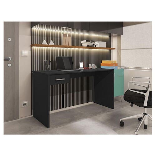 Mesa para Computador Ambiente Gávea com Gaveta Preto Trama - Móveis Leão
