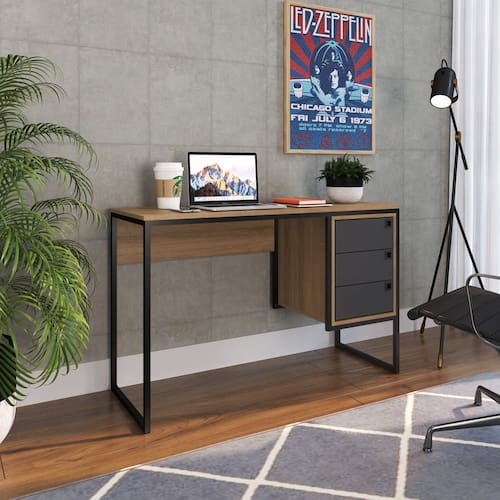CARACTERÍSTICAS TÉCNICAS: - Produzido em MDP de 20mm; - Acabamento Office na Cor Grafite e Marrom; - Gavetas com Corrediças Metálicas; - Peso Máximo Suportado de 35Kg; - Puxadores em Plástico; - Estrutura Metálica para maior durabilidade; - Possui 4 ponteiras plásticas.