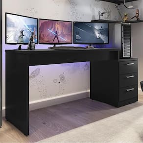 Mesa Para Computador Desk Gamer Drx-5000 Preto Black - Pr Móveis Preto Black Mesa Para Computador Desk Gamer DRX-5000 - PR Móveis A Mesa Gamer DRX-5000 é o produto ideal para você que é apaixonado no mundo dos games, que gostam de espaço e funcionalidade com design diferenciado. A Mesa Gamer tem um espaço para até três monitores, conta com três gavetas para deixar os acessórios de jogos sempre à altura das mãos e o melhor, tudo organizado. O seu ambiente gamer vai ficar muito mais completo. ESPECIFICAÇÕES: - Estrutura em MDP - Pintura UV texturizada - 3 Gavetas - Corrediças telescópicas - Puxadores de plástico - 6 Pés com regulagem de altura - Montagem do gaveteiro de várias formas - Suporta até 25kg