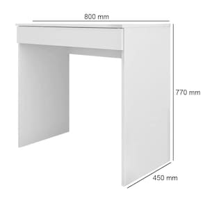 A superfície ampla proporciona espaço suficiente para seu computador, teclado e outros acessórios, enquanto a gaveta permite organizar documentos, materiais de escritório ou itens pessoais de forma discreta. Seu estilo clean e contemporâneo se adapta a diferentes estilos de decoração, tornando-a uma escolha versátil para qualquer ambiente.