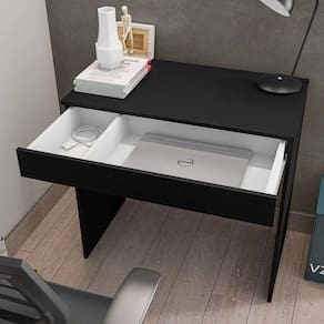 A superfície ampla proporciona espaço suficiente para seu computador, teclado e outros acessórios, enquanto a gaveta permite organizar documentos, materiais de escritório ou itens pessoais de forma discreta. Seu estilo clean e contemporâneo se adapta a diferentes estilos de decoração, tornando-a uma escolha versátil para qualquer ambiente.