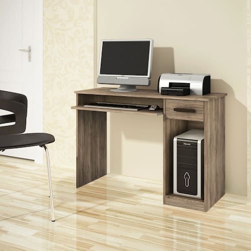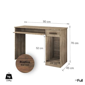 Com dimensões de 0,90m de largura, 0,76m de altura e 0,45m de profundidade, a mesa prática oferece uma gaveta espaçosa com corrediças metálicas, perfeitas para armazenar documentos, material de escritório e outros itens essenciais, uma bandeja deslizante para teclado e um nicho para gabinete de computador de mesa. O amplo tampo fornece espaço suficiente para seu monitor, impressora e outros materiais de trabalho.