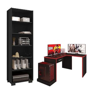 Mesa para Computador Gamer DRX 9000 com Extensora e Livreiro Office Preto Trama Vermelho - Móveis Leão