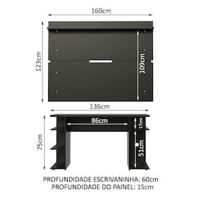 O acabamento da mesa e do painel é preto, feito com a Pintura Poliéster ecológica de 7 camadas exclusiva da Madesa, que traz mais proteção aos móveis.