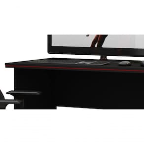 Mesa Para Computador Gamer Preto Com Vermelho - Gelius Móveis Ideal para montar o seu setup e dispor seus equipamentos a Mesa para Computador Gamer - Gelius Móveis, irá proporcionar uma melhor , e também garantir um melhor desempenho na sua rotina, possui espaço para o gabinete. Além de nichos organizadores. Conta com detalhe colorido em perfil, podendo-se escolher a cor no momento da ões do Produto montado:Altura: 77 cmLargura: 133,8 cmProfundidade: 62 cmObservações:- Nichos amplos;- Detalhe em perfil azul e vermelho para escolha na hora da montagem;- Espaço para gabinete;- Pintura ultravioleta com acabamento acetinado.