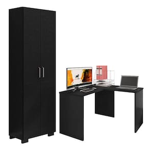 Mesa para Computador Gávea com Extensora e Livreiro Office com Portas Grandes Preto Trama - Móveis Leão