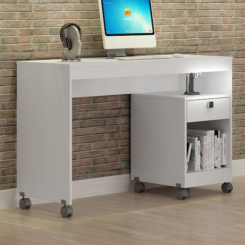 Características: Acabamento: Pintura UV Material Principal: MDP Escala de Brilho: Fosco Estilo: Contemporâneo Formato: Retangular Possui Portas: Não Rodízio com Trava: Não Suporta Até: 26 kg Possui Suporte para Teclado: Não Possui Passa Cabos: Não Possui Suporte para CPU: Sim Possui Porta Objetos: Sim Possui Prateleiras: 01 Material da Prateleira: MDP Acabamento da Prateleira: Pintura Escala de Brilho da Prateleira: Fosco Peso Máximo por Prateleira: 1 Possui Gavetas: 01 Acabamento da Gaveta: Pintura UV Escala de Brilho da Gaveta: Fosco Gaveta com Chave: Não Tipo de Corrediça da Gaveta: Metálica Simples Tipo de Puxador da Gaveta: Externo Material da Gaveta: MDP Peso Máximo por Gaveta: 2 Material do Puxador da Gaveta: ABS Sapatas Niveladoras: Não Necessita Montagem: Sim Sistema de Montagem: Parafusos e Cavilhas Complexidade da Montagem: Média: pode ser montado por mais de uma pessoa e/ou necessite de maior conhecimento para montagem Recomendações de Uso, Manutenção e Limpeza: Recomendamos que a limpeza seja feita apenas com pano umedecido.