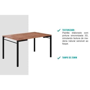 Mesa de Sala Jantar 1526 Aço c/Tampo Madeirado 136x90cm Preto/Legno - Carraro