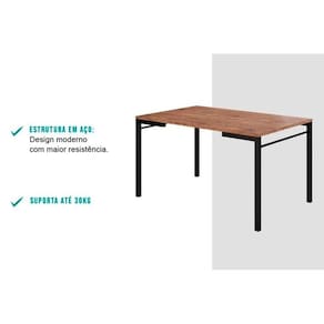 Mesa para Cozinha 1526 + Tampo Madeirado 136x90cm Preto/Legno - Carraro - Blush