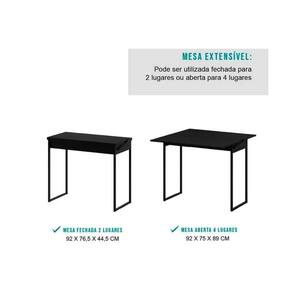 Mesa de Sala Jantar 1589 Extensível Preto - Carraro
