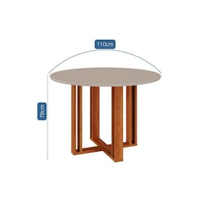 Tamanho do Tampo - Tampo 109 cm x 109 cm Espessura da Estrutura do Tampo - 25 Tipo de Formato Tampo da Mesa - Tampo Redondo Tipo das Quinas do Tampo da Mesa - Bordas Arredondadas Tipo dos Pés - Pés de Madeira Quantidade de Pés - Móvel possui 4 pés
