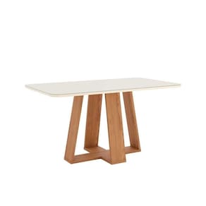 Mesa de Sala Jantar Lins SC92 c/ Tampo Madeirado c/ Vidro Curvo 160x90cm Nature/Off White - Henn Marca: Henn