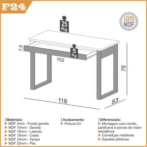 Itens Inclusos: 1 Mesa Escritório (F24)