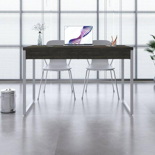 Mesa para Escritório 120cm 2 Gavetas Kuadra Carvalho Dark / Est.Branca - Marrom