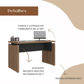 Invista em uma peça funcional e de qualidade e transforme seu espaço de trabalho em um ambiente mais belo e produtivo! Acabamento do Tampo: BP Acompanha Manual de Instalação: Sim Ambiente Principal: Escritório Complexidade da Montagem: Média: pode ser montado por mais de uma pessoa e/ou necessite de maior conhecimento para montagem Cor: Nogal com Preto Cor da Base: Marrom Cor do Produto: Nogal com Preto Cor do Tampo: Marrom Escala de Brilho: Fosco Espessura do Tampo: 37 Formato: Retangular Informações Complementares: Tampo e laterais de Tamburato 37mm, extremamente robusto, sofisticado, estável e resistente Itens Inclusos: 1 mesa desmontada, 1 manual e 1 kit de ferragens Linha ou Coleção: Y37 Manual de Especificação Técnica: https://cdn2.madeiramadeira.com.br/atributo/artany/1686958-ficha-tecnica-mesa-operacional-1450-ii-y37.pdf Manual de Montagem e Instalação: https://cdn2.madeiramadeira.com.br/atributo/artany/1686957-manual-mesa-operacional-1450-ii-y37-6150-6299.pdf Material da Estrutura: Tamburato Material do Tampo: Tamburato Material dos Pés: Plástico Material Principal: Tamburato Montagem Flex: Não Necessita Montagem: Sim Origem do Produto: Nacional Pés com Regulagem de Altura: Sim Peso: 36.1 Possui Passa Cabos: Não Possui Portas: Não Possui Prateleiras: Não Possui Suporte para Teclado: Não Recomendações de Uso, Manutenção e Limpeza: Limpar com pano levemente umedecido. Sapatas Niveladoras: Sim Sistema de Montagem: Parafusos, minifix e tambor Suporta Até (kg): 50