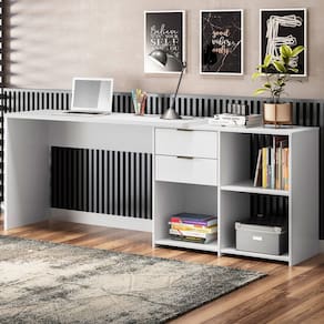 O(a) Mesa para Escritório 2 Gavetas Golfo Branco - Pnr Móveis é produzido em MDP na escala de brilho Fosco, e possui um grau de dificuldade de montagem: Médio.