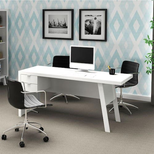 A Mesa para escritório ME4122 da Tecnomobili é ideal para você! Essa mesa para escritório ideal para desempenhar tarefas diárias de trabalho, com duas gavetas acopladas deixa o processo muito mais ágil e acomoda inúmeros objetos que você desejar Possuir estrutura em MDP e MDF com acabamento em BP que garante qualidade ao móvel e protege contra manchas e riscos. Contem 2 gavetas com corrediças metálicas, puxadores em alumínio e pés laqueados. Deixando seu ambiente amplo e organizado. Aproveite!