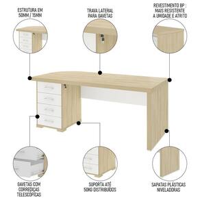 Se você procura uma mesa de escritório que seja prática e estilosa, a Mesa para Escritório com Gavetas Lado Esquerdo Corp A06 Carvalho/Branco, da Mpozenato, é a escolha perfeita.