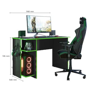 Para você que busca uma mesa para passar horas do seu dia jogando e/ou trabalhando em casa. Agora temos a Mesa Gamer com um design compacto e diferenciado, que lhe ajuda na otimização de espaço e organização do ambiente, possui uma prateleira elevada para o CPU e suporte para seu fone de ouvido. A Mesa Gamer vai ser essencial para te acompanhar nas horas de diversão e na sua jornada de trabalho. Possui Passa Cabos: Não Acabamento: Pintura UV Acabamento da Prateleira: Pintura UV Ambiente Principal: Escritório Complexidade da Montagem: Alta: deve ser montado por um montador especializado Cor: Preto Fosco/Verde Cor do Produto: Preto Fosco/Verde Cor Flex: Não Cor Interna: Preto Escala de Brilho: Fosco Escala de Brilho da Prateleira: Fosco Formato: Retangular Informações Complementares: 36 KG DISTRIBUÍDOS E SEM IMPACTO Itens Inclusos: Mesa e manual de montagem Linha ou Coleção: Módulos e Complemento Manual de Montagem e Instalação: https://cdn2.madeiramadeira.com.br/atributo/qmovi/883233-3875-mesa-para-escritorio-e-gamer-instrucao-montagem.pdf Material da Prateleira: MDP Material Principal: MDP Montagem Flex: Não Necessita Montagem: Sim Origem do Produto: Nacional Peso: 20,3 kg Peso Máximo por Prateleira: 8 kg Possui Pés: Não Possui Portas: Não Possui Prateleiras: 02 Recomendações de Uso, Manutenção e Limpeza: Limpar com flanela ou pano macio levemente umedecido, não utilizar produtos abrasivos, desengordurantes, álcool ou solvente. Não expor o produto diretamente à luz solar e à umidade. Sapatas Niveladoras: Não Sistema de Montagem: Parafusos, cavilhas e pino de girofix Suporta Até (kg): 36 kg