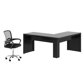 Mesa para Escritório em L Angular Me4116 com Cadeira Diretor Tela Mesh Tok 3310 Preto