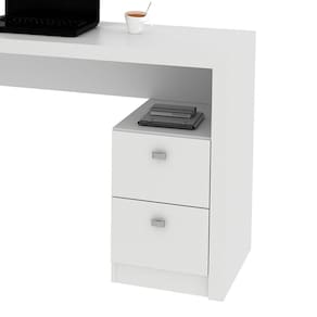 Mesa para Escritório em L com 02 Gavetas ME4129 Branco Tecnomobili