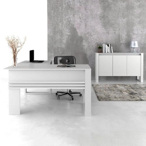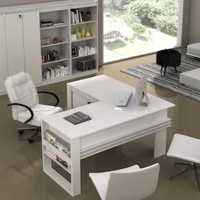 A Mesa angular para escritório Charme, é feita em MDP 15mm, não possui gavetas, tem formato "L" que oferece amplo espaço para trabalhar, deixa o ambiente de trabalho organizado e com design super moderno. Excelente produto para montar seu escritório. O Balcão para escritório contem 3 portas, feito em MDP 15mm, é ideal para deixar seus documentos, objetos mais organizados, tem um design diferenciado deixando o ambiente mais moderno e sofisticado, alem de ser versátil você pode utiliza-lo para compor outros ambientes da sua casa. Acabamento: BP Altura do Conjunto: 84 cm Ambiente: null Ambiente Principal: Escritório Cor: Branco Informação Complementar: 1x Mesa para Escritório em L Charme BrancoLargura: 136 cmAltura: 74 cmPeso: 37,15 kgProfundidade: 60 cmNecessita Montagem: Sim1x Balcão para Escritório 3 Portas ME4147 BrancoLargura: 136 cmAltura: 84 cmPeso: 33,65 kgProfundidade: 36 cmNecessita Montagem: Sim
