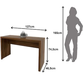 - Não nos responsabilizamos pela montagem dos produtos. Todos os produtos acompanham acessórios para que sejam montados. - Não nos responsabilizamos, no ato da , por subir escadas/elevadores ou por guincho em apartamentos. Eventuais despesas são de responsabilidade do comprador; - Confira as dimensões deste produto e certifique-se de que passará normalmente por supostos elevadores, portas, escadas e/ou corredores de sua residência; - Não aceitamos de produtos com caixas violadas ou materiais danificados, confira a quantidade de volumes e se o que está sendo entregue corresponde com a mercadoria adquirida, não aceitamos após o prazo de arrependimento de 7 dias corridos. Características Gerais do Produto: - Altura: 74,5 cm - Ideal para: Escritório - Informações Adicionais: Suporta até 20kg no tampo - Largura: 127 cm - Material: Estrutura em MDP - Pintura: Costas na cor do móvel - Profundidade: 46,5 cm - Acabamento: Acabamento em BP - Informações Adicionais: - Não nos responsabilizamos pela montagem dos produtos. Todos os produtos acompanham acessórios para que sejam montados. - Não nos responsabilizamos, no ato da , por subir escadas/elevadores ou por guincho em apartamentos. Eventuais despesas são de responsabilidade do comprador; - Confira as dimensões deste produto e certifique-se de que passará normalmente por supostos elevadores, portas, escadas e/ou corredores de sua residência; - Não aceitamos de produtos com caixas violadas ou materiais danificados, confira a quantidade de volumes e se o que está sendo entregue corresponde com a mercadoria adquirida, não aceitamos após o prazo de arrependimento de 7 dias corridos.