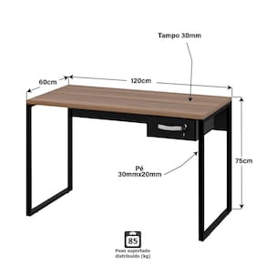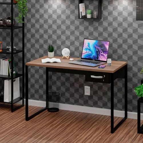 Mesa Para Escritório Escrivaninha Diretor Estilo Industrial 120cm com Gaveta Nogal - Marrom