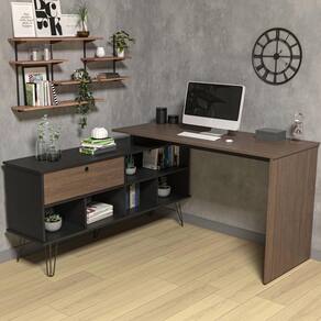 Com montagem ível (lado esquerdo ou direito), essa escrivaninha em L se adapta ao seu espaço e hábitos, enquanto os encantadores pés de metal trazem um toque industrial cheio de personalidade. Além disso, os nichos organizadores oferecem espaço estratégico para livros, decorações e itens essenciais, mantendo tudo à mão sem perder o estilo. E o melhor? Com traseira totalmente acabada, você posiciona a mesa onde quiser - como divisória de ambientes, encostada na parede ou até no centro do espaço, criando um cantinho produtivo que reflete sua essência. Porque trabalhar bem começa em um ambiente que é puramente seu.