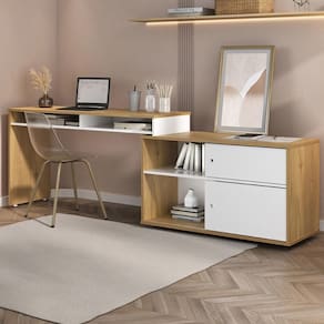 A Mesa para Escritório Forms, da Lyam Decor, chega para desafiar o convencional! Com 12 opções de montagem, você escolhe a configuração perfeita para o seu espaço e personalidade, seja um home office compacto ou um escritório cheio de estilo.