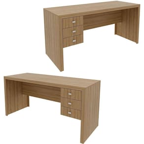 Características da Mesa para Escritório Reversível 155 cm 3 gavetas: - Estrutura em MDP; - Acabamento em BP; - 3 gavetas; - Puxadores de plástico; - Costas na cor do móvel; - Sua montagem pode ser reversível; - Suporta até 15kg tampo principal e 3kg cada gaveta; - Para uma limpeza mais efetiva, utilizar apenas pano macio umedecido e sabão neutro. Não utilizar produtos abrasivos; - Montagem por conta do comprador; - Não acompanha objetos decorativos;