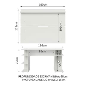 O acabamento da mesa e do painel é branco, feito com a Pintura Poliéster ecológica de 7 camadas exclusiva da Madesa, que traz mais proteção aos móveis.