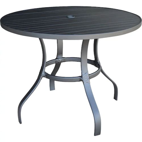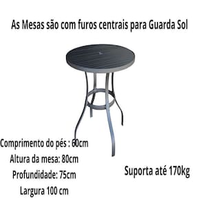 01 Mesa com Tampo Ripado em Alumínio e Pintura Eletrostática com furo para guarda-sol.