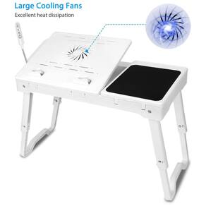 Ventilador de resfriamento silencioso e laptops de até 17 polegada Este incrível suporte para laptop para cama possui 2 ventiladores de resfriamento silenciosos comutáveis integrados que protegerão efetivamente o seu computador de aquecimento. Tudo o que você precisa fazer é conectar o cabo USB ao computador e permitir que os ventiladores façam seu trabalho. As bandejas para laptop servem para laptops de 11,6, 13,3, 14, 15,6 polegadas. 2 alturas ajustáveis e portátil as pernas desta mesa cama para laptop podem ser dobradas em 2 alturas 10 e 15 para atender às suas necessidades. Basta dobrá lo e colocá lo em um canto ou embaixo da cama para economizar espaço no quarto também é muito fácil de levar com você durante a viagem. Lâmpada de mesa LED e 4 portas USB lâmpada LED com varinha de luz ajustável que funciona como uma lâmpada de mesa para reduzir o cansaço visual quando você está trabalhando em áreas onde as condições de iluminação são ruins 4 portas USB 2.0 ajudam você a conectar até 4 dispositivos ao seu computador. 3 ângulos ajustáveis para laptop Mesa de apoio com 3 configurações de ângulo disponíveis, você pode inclinar a mesa para o ângulo perfeito e melhorar sua postura ao sentar para evitar feridas nos olhos e pescoço tenso, dois defletores de folha solta evitam que os laptops escorreguem. 100 DINHEIRO DE VOLTA GARANTIDO e compartimentos de zenamento Responderemos dentro de 24 horas se você tiver algum problema com a mesa do laptop de cama. Sua satisfação é nossa prioridade. Os compartimentos de zenamento têm de profundidade sob o mouse pad, que pode zenar itens pequenos como o cabo do carregador Marca: Não Informado