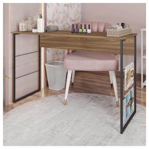 A Mesa Manicure Fabrick, traz um design unico e inovador, conta com detalhes da estrutura metalon, deixando o produto mais sofisticado e elegante. Possui Tampo que permite o uso funcional, facilitando seu dia dia. Feito MDP BP e Metalon possui maior resistência e durabilidade ao móvel.